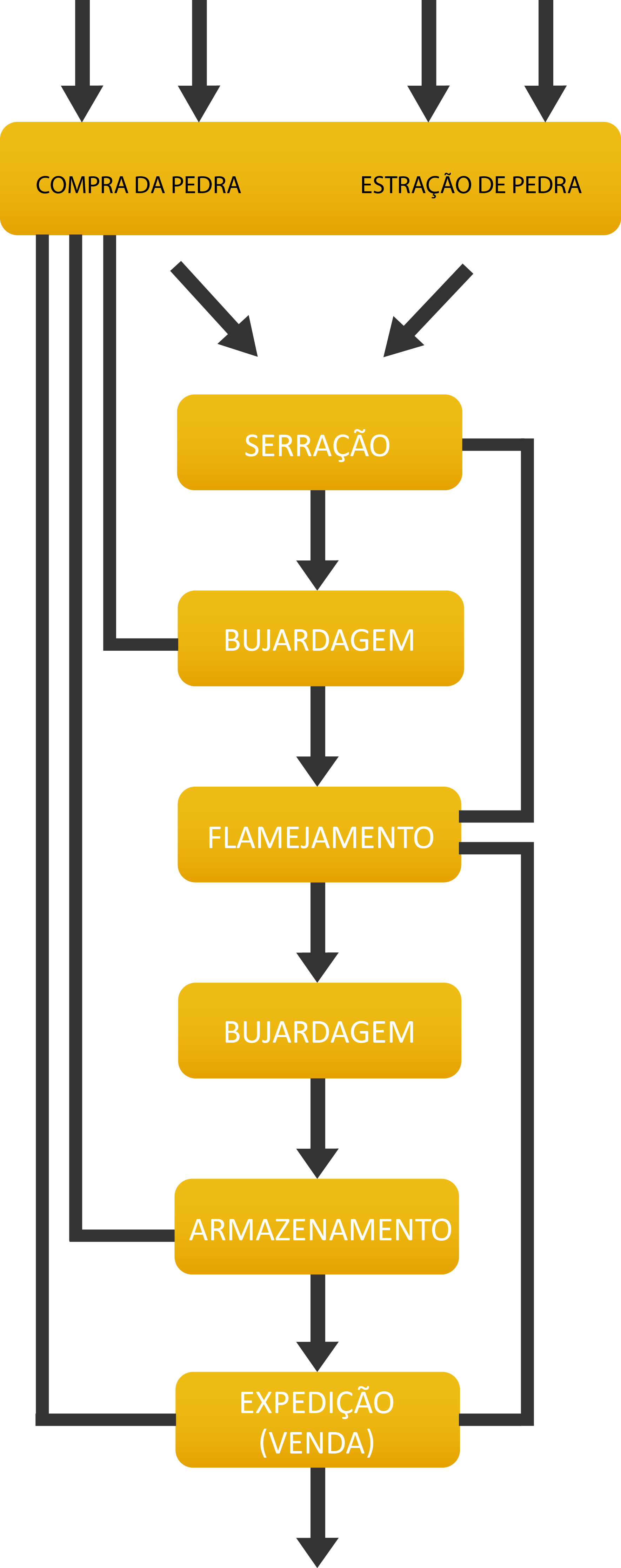 Com a produção dos novos produtos podemos redefinir o processo produtivo da empresa como vindo a ser representado pelo seguinte esquema: É um esquema produtivo que segue a normalidade das empresas do sector. A matéria-prima é extraída e sofre uma primeira alteração sendo disponibilizada ao mercado para que outros, a jusante, a transformem novamente.